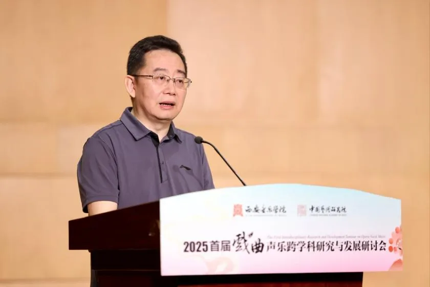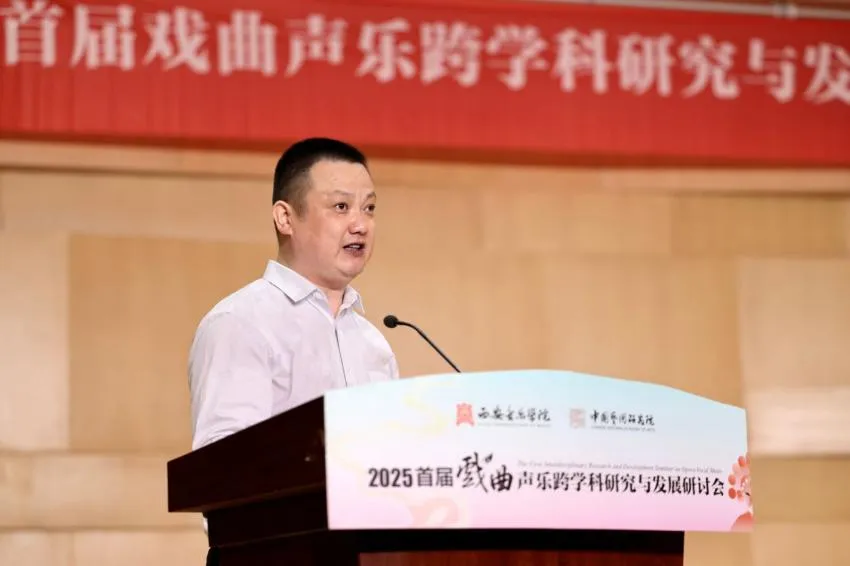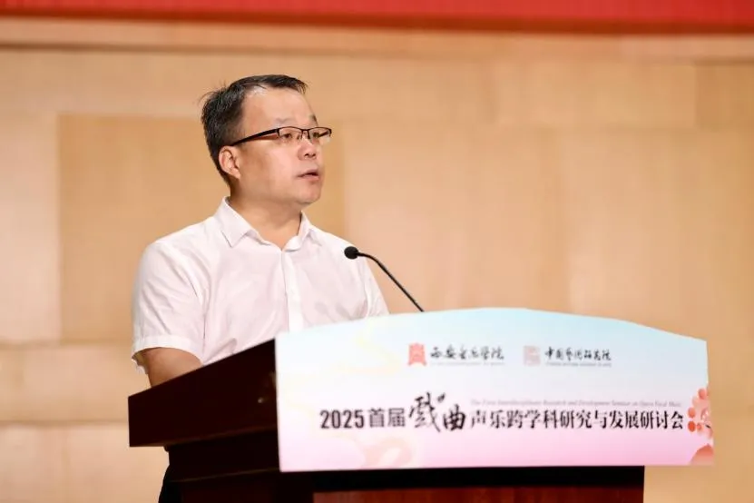 研讨会开幕式由西安音乐学院副院长郭强主持,西安音乐学院院长王刚首先发表开幕致辞,对参加研讨会的各位领导、专家学者表示热烈欢迎,同时表示西安音乐学院将以嗓音研究中心、艺术嗓音科技重点实验室为依托,持续推动戏曲声乐跨学科研究的学术创新与实践落地,为传统艺术的当代发展贡献高校力量。