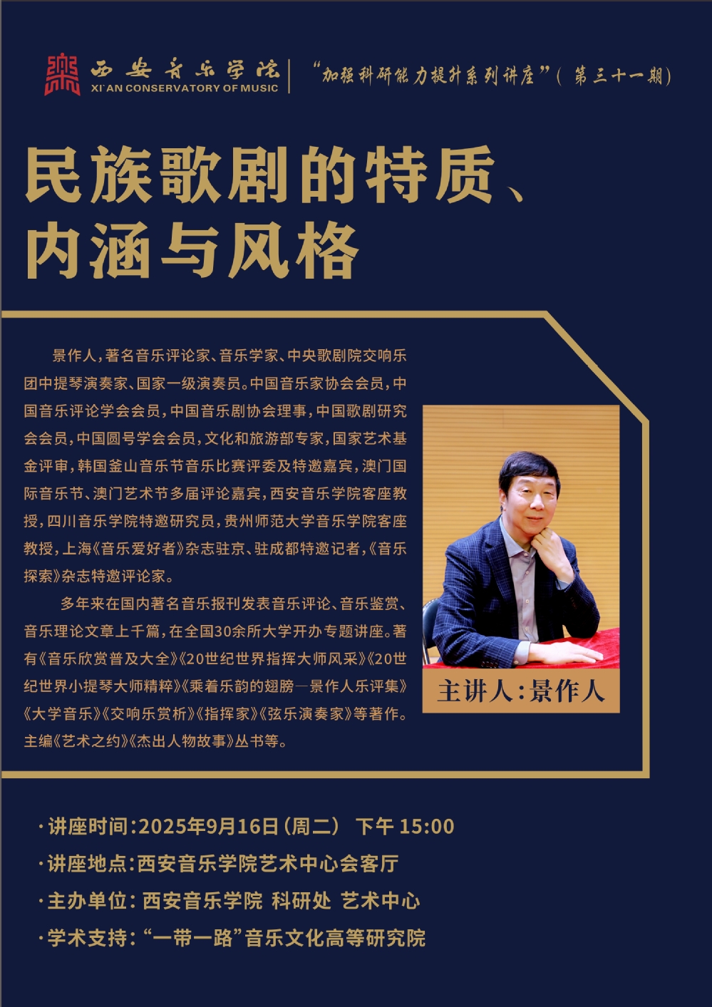 “加强科研能力提升系列讲座”第三十一期——民族歌剧的特征、内涵与风格